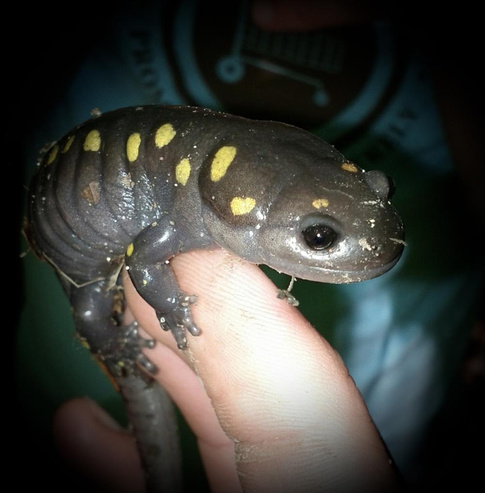 On spring nights, spotted salamanders congregate in pools in the woods to mate.