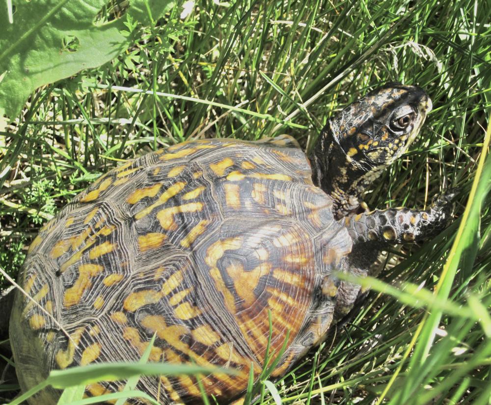 I don’t bump into them often, but one morning I found a box turtle in a wild strawberry patch. Its face was all covered with red strawberry juice and seeds. I could tell it had spent the whole night stuffing its face and was so pleased with itself!