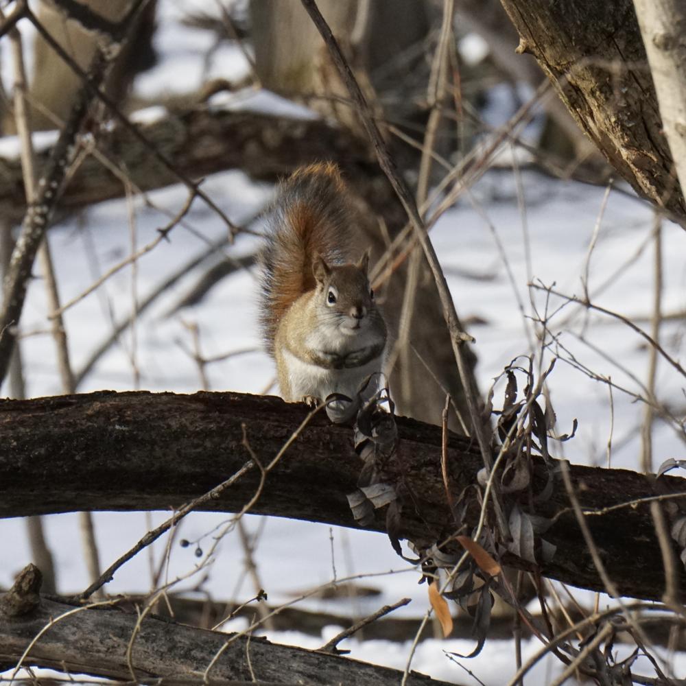 This eastern grey squirrel tucks his paws in his coat to warm them up. I can relate.